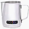 Our foam pitcher set including one milk frothing pitcher and one decorating jug, can help you Creating micro-foam is a challenge even for the professional. It requires introducing the right amount of air, integrating it evenly throughout the milk, as well as frothing to the right temperature. Above 60 C milk fat start to separate from the proteins in the milk, creating a watery layer and making micro-foam difficult to achieve.The Temp Control Milk Jug has an integrated thermometer indicator strip to help you texture milk to the optimum temperature range. Temperature markings shown in both Celsius and Fahrenheit with a range of 37 C to 70 C. It is made with premium thick gauge stainless steel with a spout designed for pouring latte art.